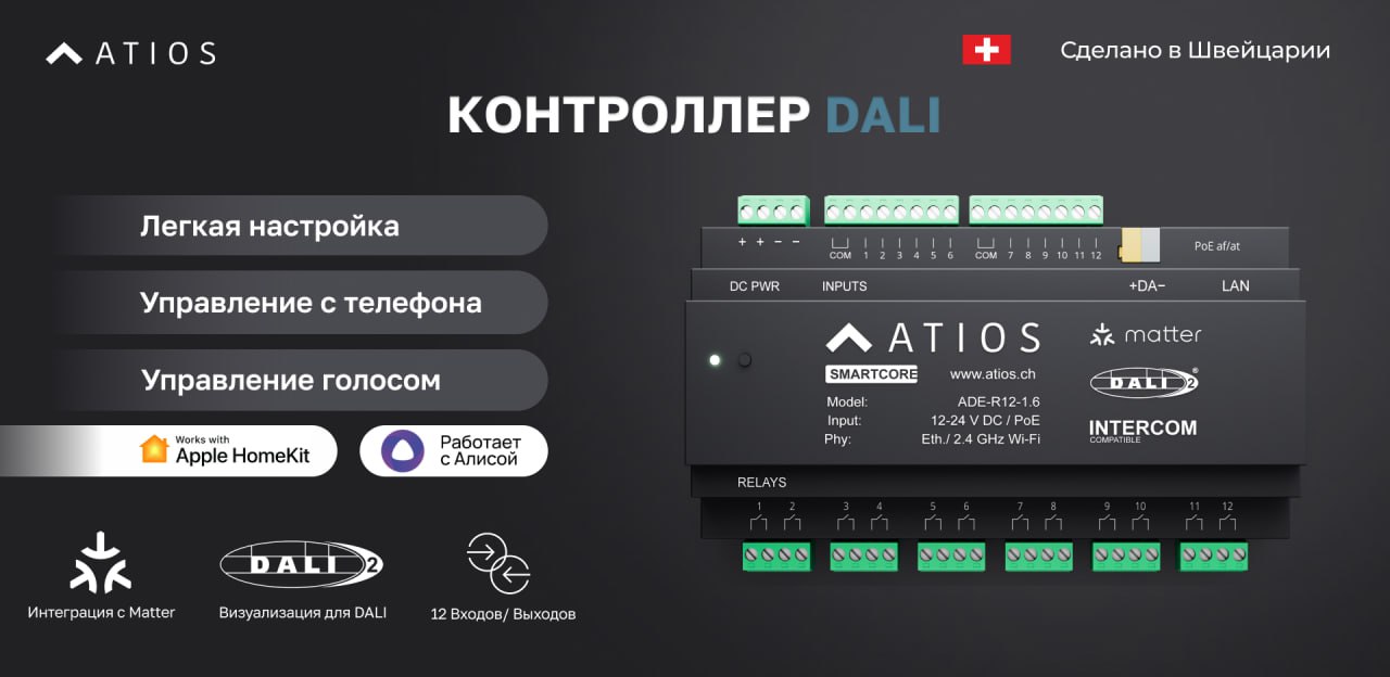Компания Atios основана в 2020 году, специализируется на оборудовании и решениях для умного дома. Они предлагают продукты, которые интегрируются с существующими системами, такими как KNX и DALI, используя стандарт Matter для взаимодействия на различных платформах, таких как Apple Home, Google Home и других.