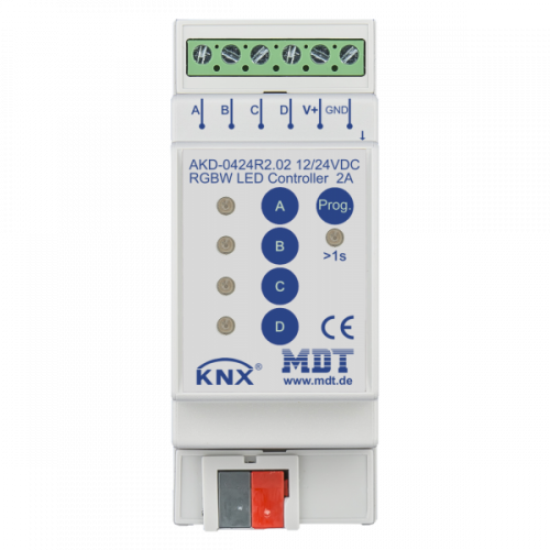 MDT AKD-0424R2.02 LED контроллер KNX 4-канальный, выходное напряжение 12/24В=, нагрузка 4x2А или 2x4А (объединение каналов)