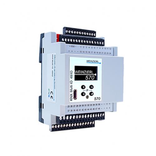 Weinzierl WZL-512194 Модуль бинарных входов/выходов KNX TP Multi IO 570 48I/O, 48x канальный, выходы на твердотельных реле до 100 мА, входы 24В=, встроенный интерфейс данных KNX-USB 2.0 Micro-B, OLED дисплей, ручное управление, на DIN рейку, 4TE