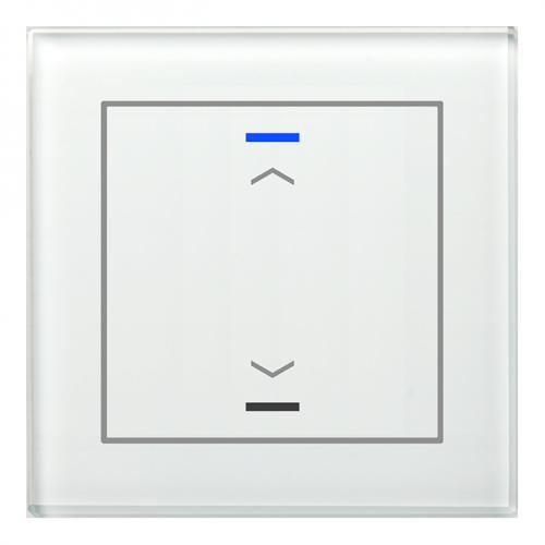 Многофункциональный выключатель с RGBW индикацией состояний, символы ВВЕРХ / ВНИЗ, материал: белое стекло / белый пластик, шина KNX.