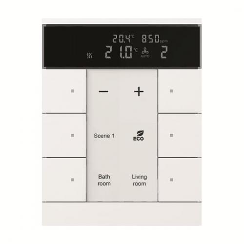 ABB SBC/U6.0.1-884 Регулятор комнатной температуры с датчиками CO2/влажности, 6-клавишный, белый бархат, цвет: Белый, оттенок: Бархат