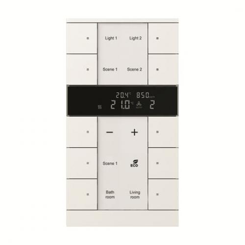 ABB SBC/U10.0.1-884 Регулятор комнатной температуры с датчиками CO2/влажности, 10-клавишный, белый бархат, цвет: Белый, оттенок: Бархат