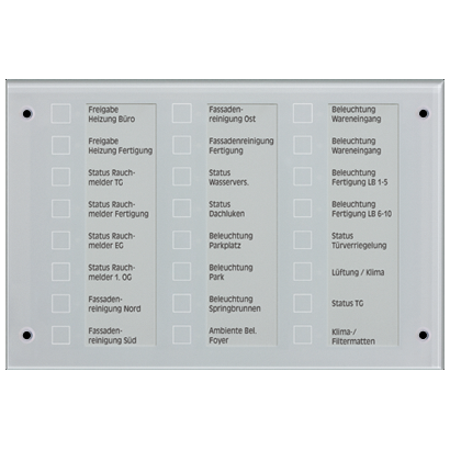 - Status indication with 24 LEDs; the colours red, green and blue can be configured