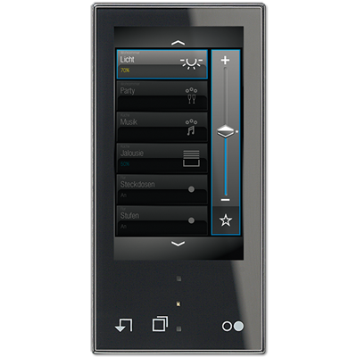 - Управление нагрузками и визуализация состояния оборудования, например включения и диммирования освещения, управления шторами, значений температуры и потребления и т.д.