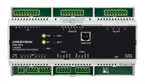 - Встроенный ИК/последовательный порт, порты COM, ввода-вывода, реле, Cresnet® network и порты управления Ethernet