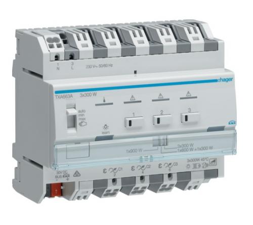 Hager TXA663A Универсальный 3-канал привод диммирования KNX easy, 3x300Вт, ESL / LED