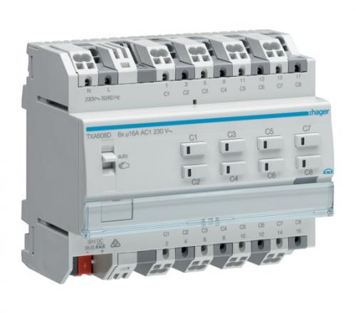 Hager TXA608D Переключатель, актор для жалюзи 8-канал KNX easy 16А, C-Last