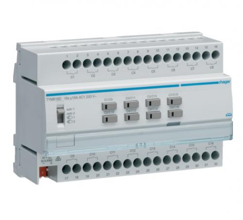 Hager TYM616D Переключатель, актор для жалюзи 16-канальный, KNX 16А, C-Last