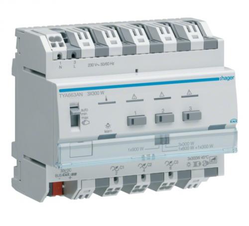 Hager TYA663AN Универсальный привод диммирования 3 канал, KNX, 3x300Вт, ESL / LED