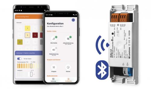 DALI-2 BT5 Room Controller Контроллер комнаты DALI служит интерфейсом между Bluetooth 5.0 и DALI. Приложение для смартфонов Lunatone DALI-Cockpit Mobile предлагает понятный и простой интерфейс с помощником по установке, различными вариантами конфигурации и настраиваемым пользовательским интерфейсом для управления подключенными устройствами. Модуль имеет встроенную шину питания (200 мА) для системы DALI, состоящей из 64 устройств DALI. Независимый механизм управления подходит для дистанционной установки потолка или интеграции в светильники.