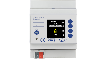 Переключатель времени MDT с 20 каналами (8 циклов для каждого канала) имеет функцию ежедневного / еженедельного / астрономического переключения и достаточный запас мощности, если напряжение на шине пропадает. Время цикла отдельных каналов регулируется ETS или может быть установлено непосредственно на устройстве. Большой активный цветной дисплей для удобного использования позволяет напрямую переключать 20 каналов (ручной режим).