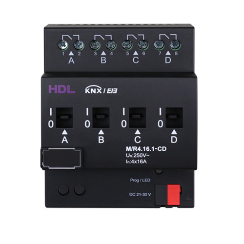 HDL-M/R4.16.1-CD — это серия продуктов полностью соответствует европейским стандартам безопасности и протоколам KNX оборудования высокой мощности, внутреннее использование мощного магнитного реле на 50A, нулевое токопотребление и длительная эксплуатация — основные особенности модуля.
