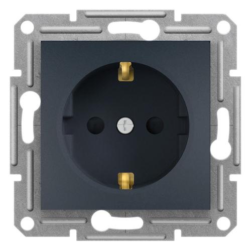 Interra ITR2900271 Одинарная розетка с боковым заземлением и жалюзи - Антрацит