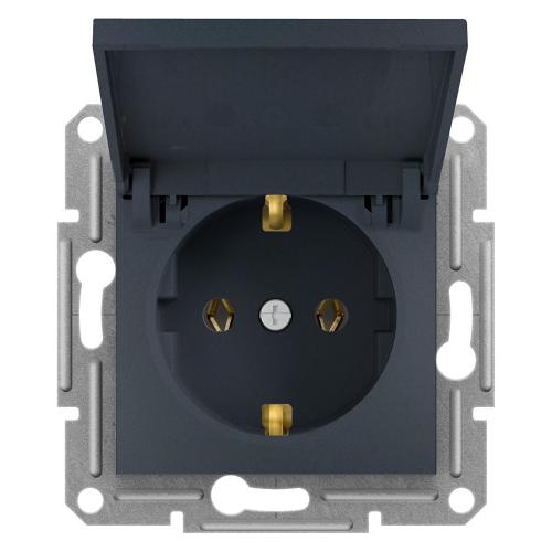 Interra ITR3100171 Одинарная розетка с боковым заземлением с крышкой - Антрацит