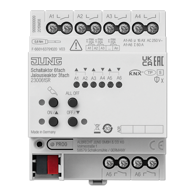 Jung 23006 1S R KNX актуатор коммутирующий 6 групп KNX актуатор жалюзи 3 группы