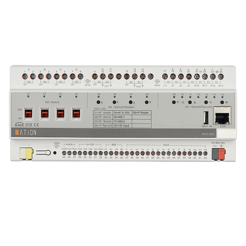 15-кратное реле может быть динамически сконфигурировано с функциями переключателя, затвора и фанкойла, 4-кратной функцией затемнения 0 В ~ 10 В, 12-кратной функцией ввода-вывода; воспроизведение музыки; Встроенный интерфейс Ethernet, интерфейс шины KNX, интерфейс шины RS485.