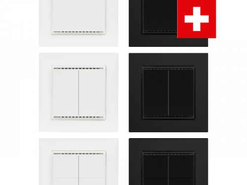 Кнопка Cala KNX MT CH имеет сенсорные кнопки, с помощью которых можно вызывать функции в шинной системе здания KNX, такие как включение освещения и устройств, затемнение, активация приводов, отправлять значения, сценарии. В каждую сенсорную кнопку встроен белый светодиод, поведение которого можно регулировать.