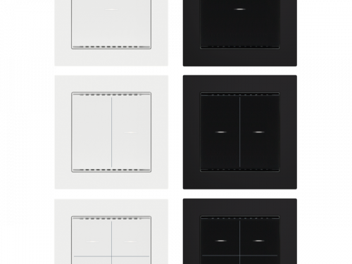 Кнопка Cala KNX MT имеет сенсорные кнопки, с помощью которых можно вызывать функции в шинной системе здания KNX, такие как включение освещения и устройств, затемнение, активация приводов, отправлять значения, сценарии. В каждую сенсорную кнопку встроен белый светодиод, поведение которого можно регулировать.