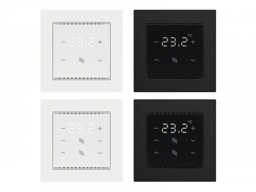 Cala KNX T 201 /202 Солнцезащитные шторки имеют ПИ-регулятор для обогрева и охлаждения. Заданную температуру можно изменить с помощью сенсорных кнопок "+" и "-".