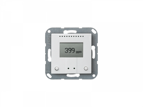 Датчик качества воздуха KNX AQS-B-UP измеряет концентрацию CO2 в помещении. Датчик может получать внешнее значение CO2 по шине и обрабатывать его с помощью собственных данных до общего значения (смешанного значения, например, среднего значения по комнате).