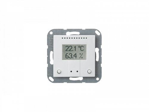 Встроенный дисплей показывает собственные значения, а также данные, полученные по шине (например, дату, время суток). Корпус дополнен рамкой той серии выключателей, которая используется в зданиях, благодаря чему органично вписывается во внутреннюю отделку.