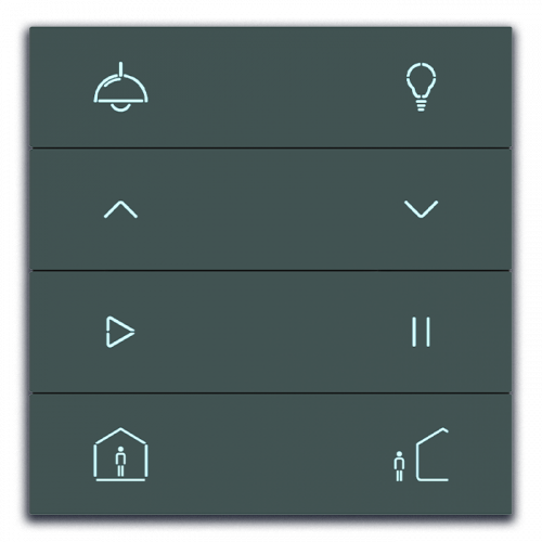 RGB-подсветка иконок отображает состояние подключенной нагрузки. Цвет подсветки может быть настроен с помощью инструмента программирования ETS.