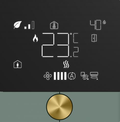 Все функции, включая изменение температуры, управляются с помощью одной ручки. Просто поверните ручку, чтобы изменить комнатную температуру, или нажмите и поверните, чтобы выбрать функцию, которую нужно изменить.