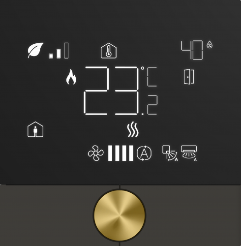Все функции, включая изменение температуры, управляются с помощью одной ручки. Просто поверните ручку, чтобы изменить комнатную температуру, или нажмите и поверните, чтобы выбрать функцию, которую нужно изменить.