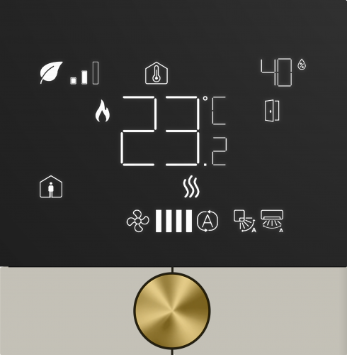 Все функции, включая изменение температуры, управляются с помощью одной ручки. Просто поверните ручку, чтобы изменить комнатную температуру, или нажмите и поверните, чтобы выбрать функцию, которую нужно изменить.