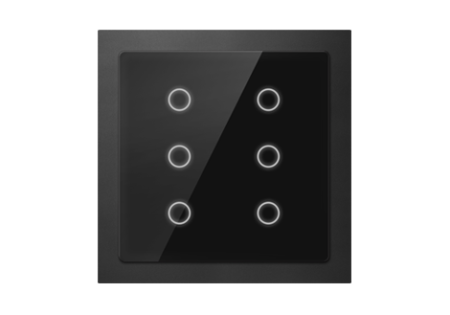 Элегантная стеклянная клавиатура с 2-сенсорными кнопками, металлический каркас, синий/желтый светодиодный индикатор; все функции KNX, включая переключение, затемнение, управление жалюзи, управление сценариями, отправку сообщений и т. д. устанавливается в настенную монтажную коробку 86*86 мм.