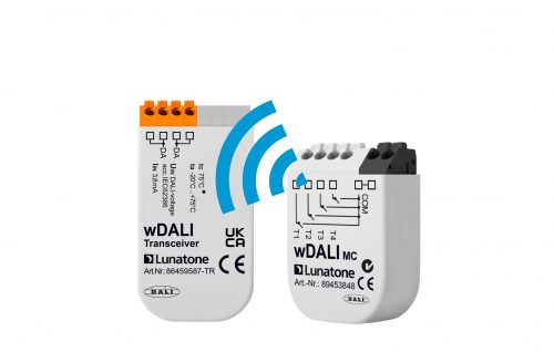 Интерфейс с беспроводным подключением к линии DALI. Этот модуль wDALI с батарейным питанием имеет четыре индивидуально настраиваемых коммутационных входа. Устройство может быть установлено в любом месте в пределах зоны приема приемника, который должен быть подключен к линии DALI. Конфигурация может быть применена через DALI Cockpit. Каждая кнопка может быть индивидуально сконфигурирована с целевым адресом, поведением кнопки и командами DALI. Помимо стандартных функций, таких как регулировка яркости, переключение, вызов сцены и т.д., поддерживаются также предопределенные макросы, такие как установка цветовой температуры, динамические сцены и секвенсор, а также списки команд, задаваемые пользователем. Устройство совместимо с мультимастером и позволяет использовать несколько модулей управления в линии DALI.