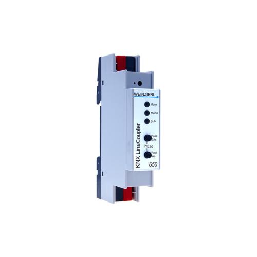 Weinzierl 5233 Линейный соединитель KNX LineCoupler 650, питание от главной линии шины KNX, расширенная таблица фильтрации для главных групп 0..31, LED индикация, на DIN рейку, 1TE