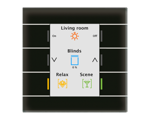 Инновационное групповое управление с длительным/сверхдлинным нажатием клавиши Новая функция сопоставления для удобного распределения функций Расширенный информационный дисплей до 3 строк и до 6 измеренных значений Современные значки (загрузка значков) Функция Slap с новым набором функций Кнопки можно запрограммировать для управления 1 или 2 кнопками До 12 функций на 2 или 3 уровнях (функции 2x6 или 3x4) До 6 функций без переключения уровней Инновационное групповое управление с длительным/сверхдлительным нажатием/нажатием клавиши Новая функция сопоставления для удобного распределения функций Большой активный цвет дисплей для индикации функции и состояния. Регулируемый цвет фона дисплея (белый или черный). Новые стандартные символы. Символы и простой текст, настраиваемые для каждой кнопки/функции. Индикация отдельных сообщений/текстовых телеграмм (1 бит / 14 байт). Применение в качестве часов реального времени в сочетании с Активатор отопления AKH 1 или 2 кнопки управления для переключения, затемнения, жалюзи, значений Короткое/длинное нажатие кнопки с 2 объектами RGB-статус всех кнопок, управляемый отдельно с каждого уровня Индикация температуры и времени в помещении/на улице Автоматическая яркость дисплея с помощью датчика освещенности и дня недели / ночной объект Функция удара с новым набором функций Рекомендуемая высота установки: 1,50-1,60 м (как кнопка) Установка в монтажную коробку Размеры (Ш x В): 92 мм x 92 мм Дополнительный источник питания не требуется С датчиком температуры для помещения измерение температуры Дополнительные функции для установки температуры и режима работы Применение в качестве RTC в сочетании с нагревательным приводом AK
