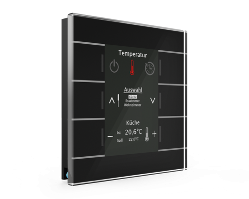 Центральный блок управления Smart сочетает в себе большое количество функций в одном устройстве и служит центральным блоком управления вашим умным домом. Встроенный астрономический таймер автоматически поднимает жалюзи утром и снова опускает после захода солнца. Кроме того, в доме с заходом солнца до полуночи включается наружное освещение и основное освещение. Все функции таймера и время переключения настраиваются индивидуально. Например, вы можете установить комфортную температуру индивидуально для всех комнат или активировать автоматическое затенение с помощью меню управления. Вы также можете заблокировать жалюзи для мытья окон или активировать систему сигнализации KNX с помощью встроенного кодового замка. Для выбранных функций прямого управления доступны четыре сенсорные поверхности. Двадцатью другими функциями можно управлять через меню и/или таймер. В целом, всеми функциями можно управлять интуитивно и удобно с помощью 6 сенсорных поверхностей. На большом активном цветном дисплее отображается температура в помещении/на улице, заданные значения температуры, дата/время, восход/заход солнца, а также визуализируются текстовые и аварийные сообщения. Центральный блок управления Glass Smart является идеальным дополнением к Glass Push-button II Smart. Рекомендуемая высота установки составляет 1,6 м.