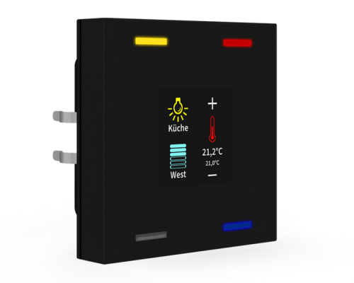 Черную версию можно заказать уже сейчас, она доступна с 23.11. Кнопочный пульт MDT Smart 60 отправляет телеграммы KNX в зависимости от параметризации после нажатия кнопок. Светодиодами состояния RGBW можно управлять с помощью внутренних или внешних объектов. Яркость светодиода можно контролировать с помощью объекта «День/Ночь» или «Яркость». Помимо переключения, затемнения, жалюзи, сцен или отправки значений доступно гораздо больше функций. Кнопочный Smart 60 имеет 4 встроенных логических блока.