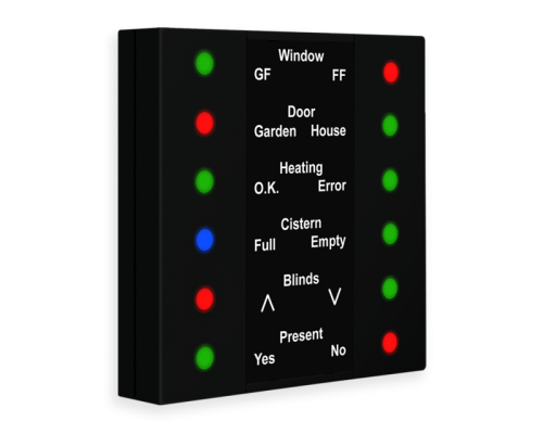 Светодиодный индикатор MDT 55 с 12 светодиодами идеально подходит для визуализации всех видов сообщений о состоянии. Для визуализации состояния окна могут отображаться три состояния (красное, зеленое, синее): например, закрыто/наклонено/открыто. Встроенная логика позволяет, среди прочего, комбинировать несколько оконных контактов. Светодиодный индикатор MDT 55 подходит для линеек выключателей ведущих производителей, таких как: GIRA Standard 55, E2, E22, Event, EspritBERKER S1, B3, B7JUNG A 500. , A PLUS, A CREATION, AS 500, A550, A FLOWMERTEN 1M, M-Smart, M-Plan, M-Pure