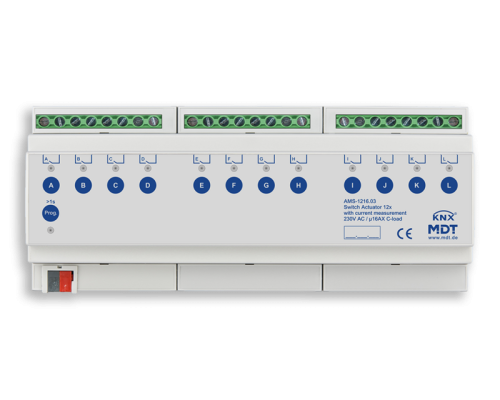 Стандартная версия активатора выключателя MDT AMS 16 А с измерением тока надежно измеряет ток на канал до 16 ампер. Это позволяет, например, контролировать превышение и понижение нагрузки. Измерение тока по каждому каналу может быть учтено при измерении общего тока.