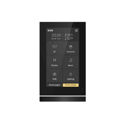 Сенсорная панель IPS 5", разрешение 480*854, алюминиевая лицевая панель, встроенный датчик температуры, Вертикально/горизонтальная версия. Полный набор функций KNX: 15 страниц управления, включая переключатель, диммирование, жалюзи, управление сценами, отправка значений, RGB, HVAC, AC, теплый пол, вентиляция, аудиоконтроль, учет энергии, отображение качества воздуха. Максимум 16 функций синхронизации, 8 групповых событий, 8 логических функций, настройка значков с помощью SD-карты.