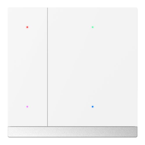 Современный изысканный дизайн серии WALTZ. Кнопки настраиваются на 1 или 2 функции. Рамка и клавиши из алюминия. Встроенный датчик температуры, LED индикаторы. Функции зависят от длительности нажатия кнопки, НО или НЗ контакт. Управление светом, шторами, сценами и пр.