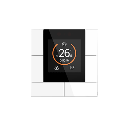 Поддержка KNX Secure. Дисплей LCD, разрешение 240*240. Встроенные датчики температуры и влажности, интерфейс на 2 входа. Опция I: кнопки управления функциями KNX (3 страницы, 4 иконки). Опция 2: страницы термостата, AC (FCU, VRF), тёплого пола и вентиляции. Опция 3: страницы фоновой музыки (автор, альбом, композиция).