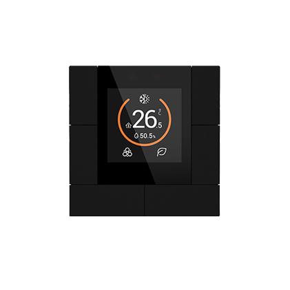 Поддержка KNX Secure. Дисплей LCD, разрешение 240*240. Встроенные датчики температуры и влажности, интерфейс на 2 входа. Опция I: кнопки управления функциями KNX (3 страницы, 4 иконки). Опция 2: страницы термостата, AC (FCU, VRF), тёплого пола и вентиляции. Опция 3: страницы фоновой музыки (автор, альбом, композиция).