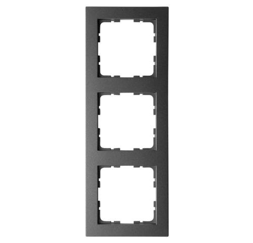 Рамка для серии 55 мм, 3 поста, чёрный пластик 100% совместимость с ЭУИ стандарта 55 мм: клавишными выключателями K-BUS, Gira standard 55, E2, Esprit, Jung Aplus, A500, AS500, Merten 1M, M-Series, Berker B3, B7, S1.