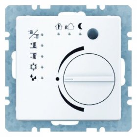 Berker 75441129 Регулятор температуры с кнопочным интерфейсом и встроенным шинным соединителем, Q.1/Q.3, полярная белизна, с эффектом бархата, цвет: Белый, оттенок: Полярная белизна, с эффектом бархата