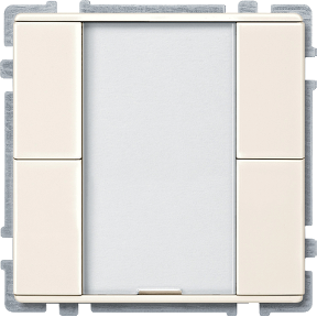 Со встроенным шинным соединителем. Кнопочный выключатель с 4 кнопками управления, индикатором рабочего состояния, 4 управляемыми по отдельности синими индикаторами и полем для надписи.