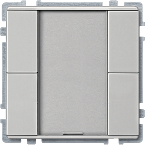 Со встроенным шинным соединителем. Кнопочный выключатель с 4 кнопками управления, индикатором рабочего состояния, 4 управляемыми по отдельности синими индикаторами и полем для надписи.