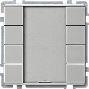 Со встроенным шинным соединителем. Кнопочный выключатель с 8 кнопками управления, индикатором рабочего состояния, 8 управляемыми по отдельности синими индикаторами и полем для надписи.
