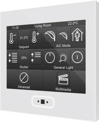 Сенсорная панель KNX Zennio Z 35, емкостной ЖК дисплей 3.5” с фоновой подсветкой, 7 страниц пользователя, 4хAI/DI, датчик приближения и освещенности, датчик температуры, 2 термостата, пластиковая рамка, 86х86х27 мм