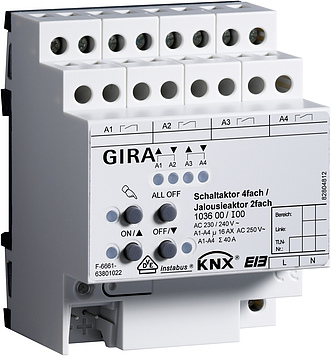 Gira 103600 Реле Устройство управления жалюзи 4-кан/2-кан, 16 A KNX/EIB REG, цвет: REG plus