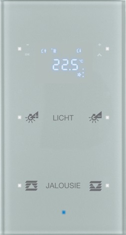 Berker 75642134 Стеклянный сенсор 2-канальный с регулятором температуры помещения, TS Sensor, цвет: Серый, оттенок: Алюминиевый