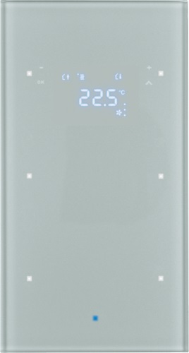 Berker 75642034 Стеклянный сенсор 2-канальный с регулятором температуры помещения, TS Sensor, цвет: Серый, оттенок: Алюминиевый